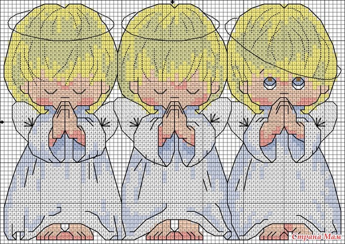 Вообще эта вышивка изначально задумывалась с другой целью-она скорее всего юморная))) Знаете почему она называется "почти идеальный"? На ней 3 ангелочка, 2 из которых само севершенство-они молятся с таким упоением, они идеальны! а 3й ангелочек скорее проказник и озорник))) у него и глаза открыты при молитве и нимб набок...