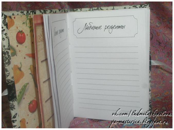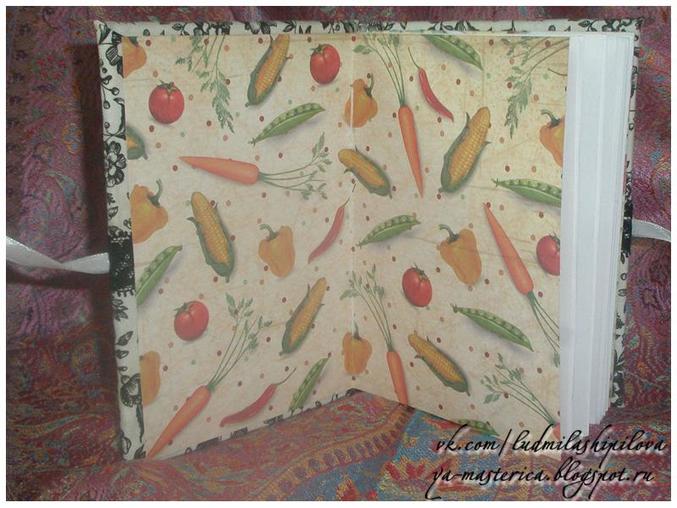 Еще один блокнотик делала в подарок сестре,она любит приготовит что-нибудь вкусненькое и чтобы не потерять любимые рецепты ей пригодился мой подарочек :)