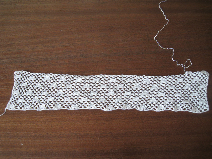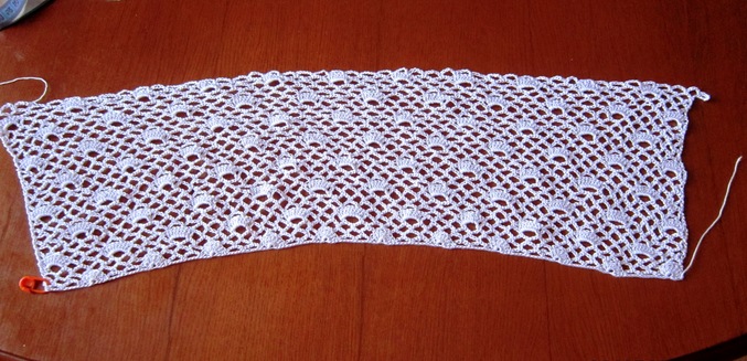 вот связала, у меня на 44-46 размер в моих ниток получилось 32 арки, набирала 129 петель