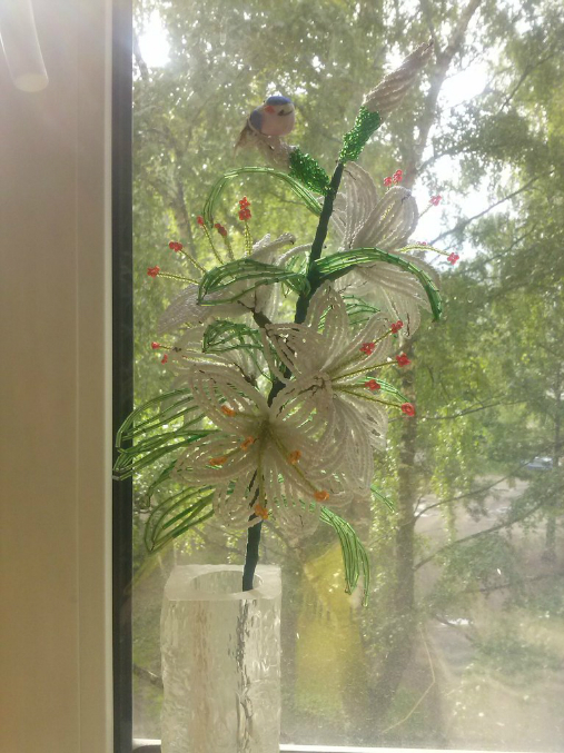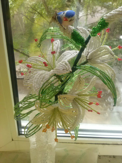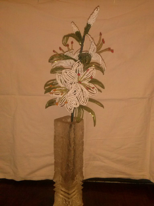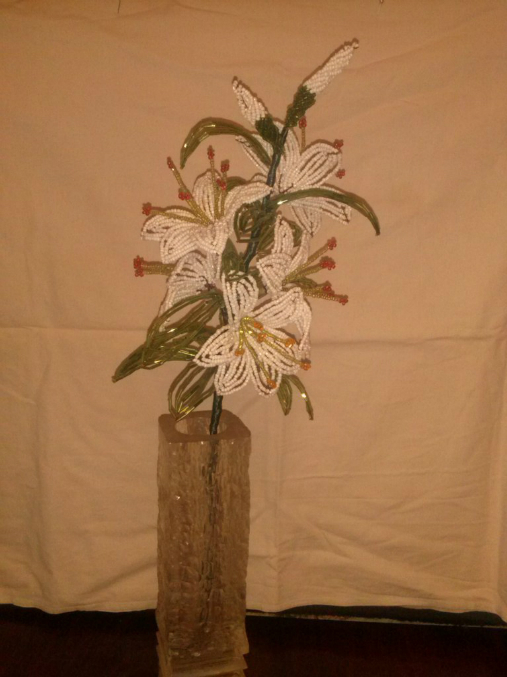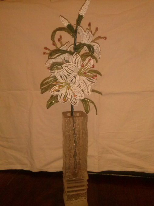 Вроде вышло неплохо,в высоту лилия 45-55см,с 5ю цветочками и 2мя бутончиками.Надеюсь подружке понравится,делала ей на день рождение,её любимые лилии