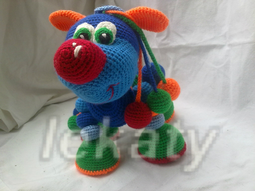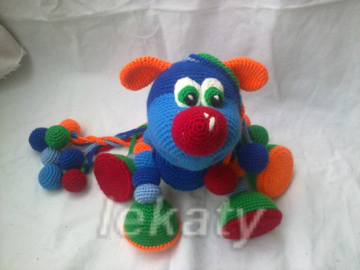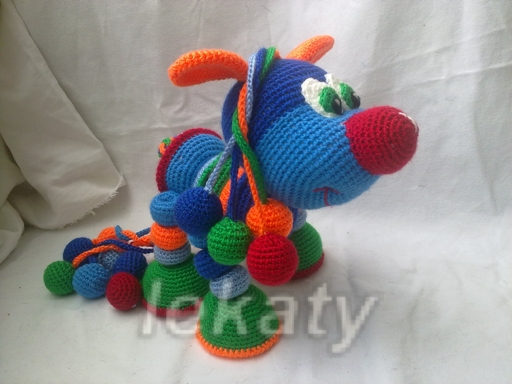 Игрушечный мир - животныеСвязался на заказ вот такой вот лошарик-развивашка для маленького мальчика! Игрушка шуршит, гремит и тд