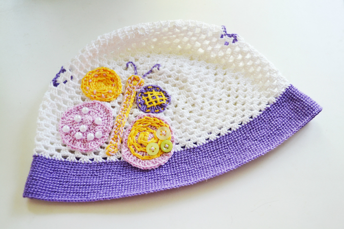 Под впечатлением от работ Vendula Maderska и Daisy Krazy, а также девочек с ББ (бабочку, каюсь, слифтила у ББ Пантеры) связала панамку на лето Хомяку. Сначала хотела купить, но девушка еще не продает их, вяжет для себя, а очень шапочка запала в душу))) В ход пошли остатки былой роскоши - ирис кировский и прочие залежалости. Теперь вот надо сиреневый гардероб подбирать. Розового у нас тоже не много.