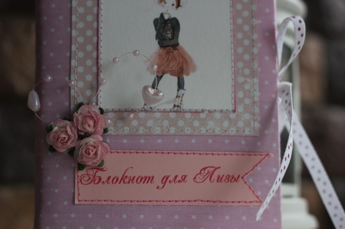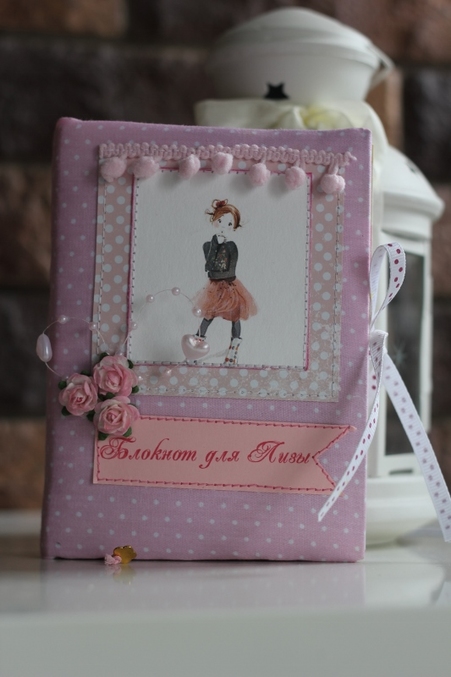 Вот такой получился у меня блокнотик в подарок для 12-летней девочки Лизы. Блокнот делала быстренько, чтобы успеть до отъезда,поэтому купила готовый блок , и просто украсила обложку