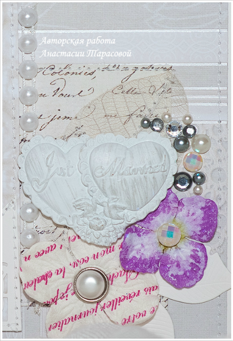 в качестве украшений я использовала кусочек фатина - словно фата невесты,и пряжечку со стразами:
