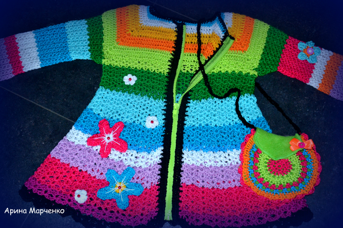 Смотрю на казалось бы просто связанный кардиганчик. ничего сложного. Но в тоже время Это не просто рядовое вязанное изделия, а шедевр. Все гениальное просто! Арина , Вы гений! Так умело все скомбинировать, немного декора, и ВАУ. Мои поздравления.