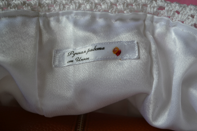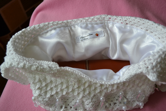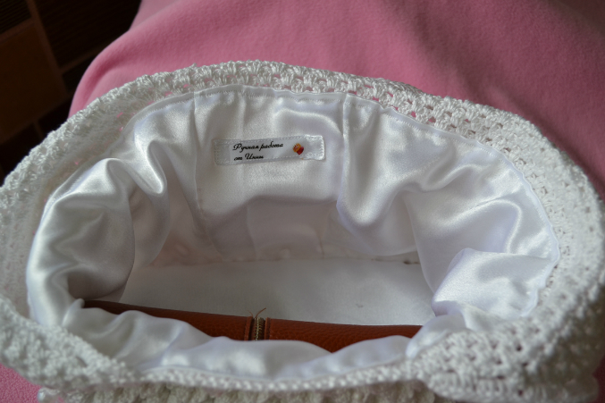 так белоснежно, так красиво!!!! я думала вязаные сумки не совсем актуальны, вот теперь иначе думаю. спасибо вам )))) так красиво, и подклад... супер! схемки нет случайно? и насчет лейбла... это вы под заказ делали или как?