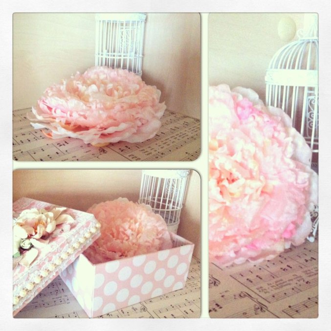 Делали пион из шелка. Получился большой и пушистенький цветок! Сделала на брошку,носить буду сама с розовой блузой - очень подходит к ней:)