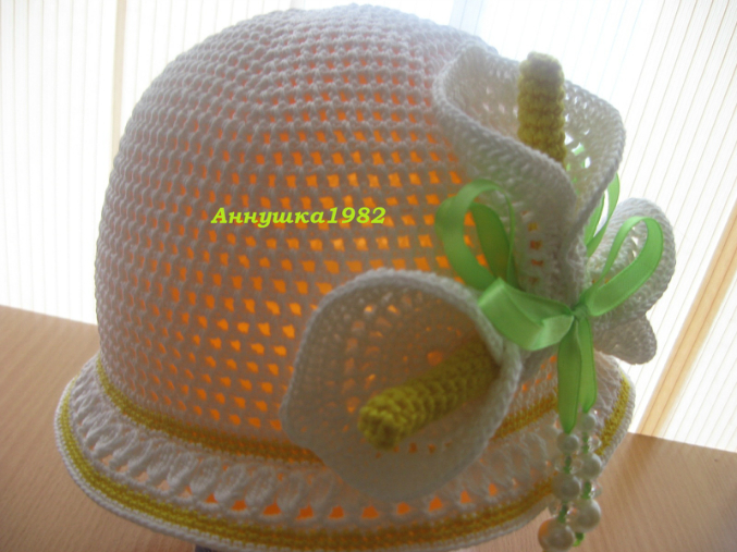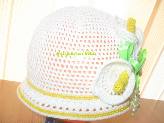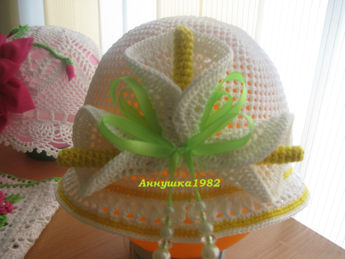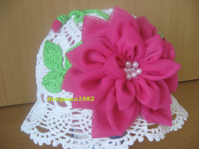 Шляпка с цветочком для Аленки, цветочек делала в первый раз...