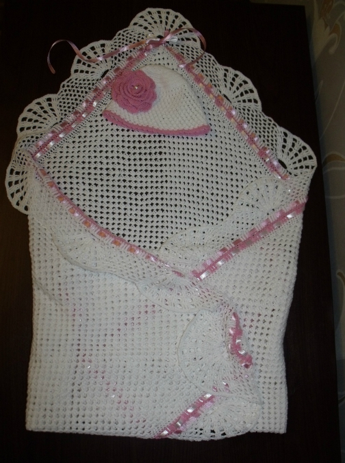 наконец-то я закончила пледик для своей малышки. с крючком я познакомилась только месяца 3 назад.это моя 2 работа. он получился почему-то немного кривоват( не совсем квадрат). но мне не хотелась распускать весь. поэтому решила так и оставить, думаю кагда ребёнок будет завёрнут не будет видно. нов общем я довольна пледиком!!!!! и ещё хочу в этой шапочки забирать с роддома, но пока ещё думаю.