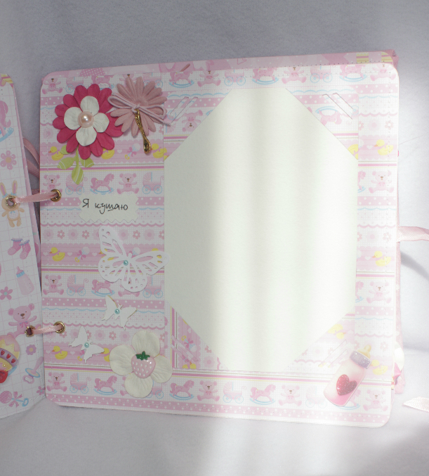 СкрапбукингСделан в подарок нашим родственникам на крестины.Размер 20х20 см.