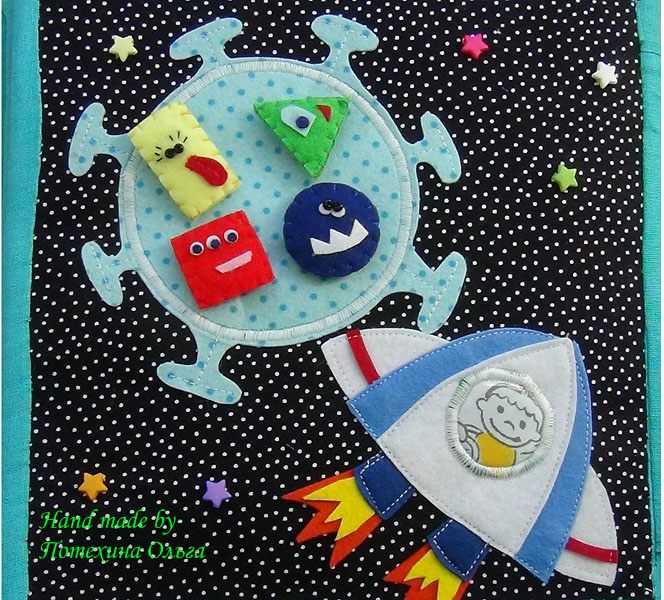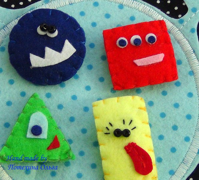 Инопланетяне разных цветов и форм(учим геометрические формы и основные цвета),на кнопках.