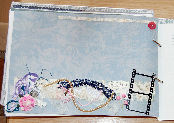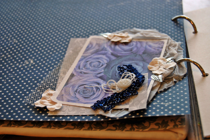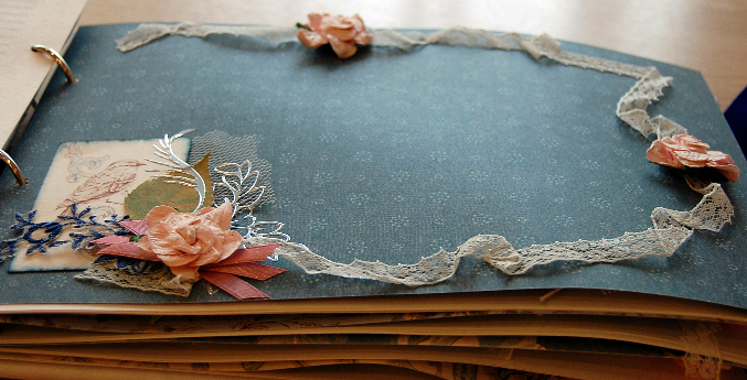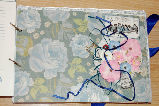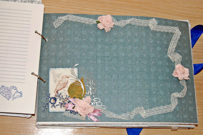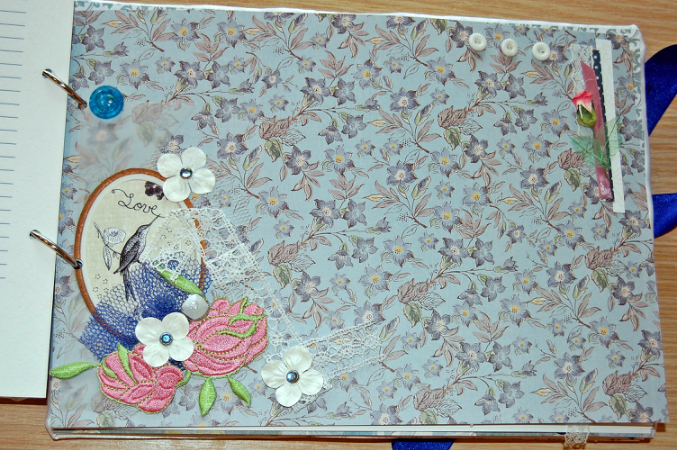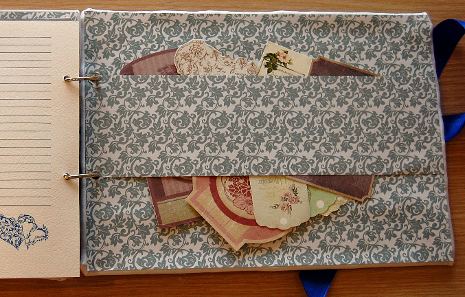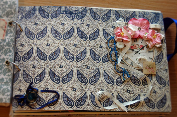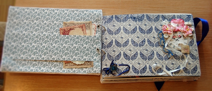 СкрапбукингДолгострой мой. Пожелания были - сине-белые цвета, странички для фото и кармашки на обложке. Ну вот собственно, что вышло: