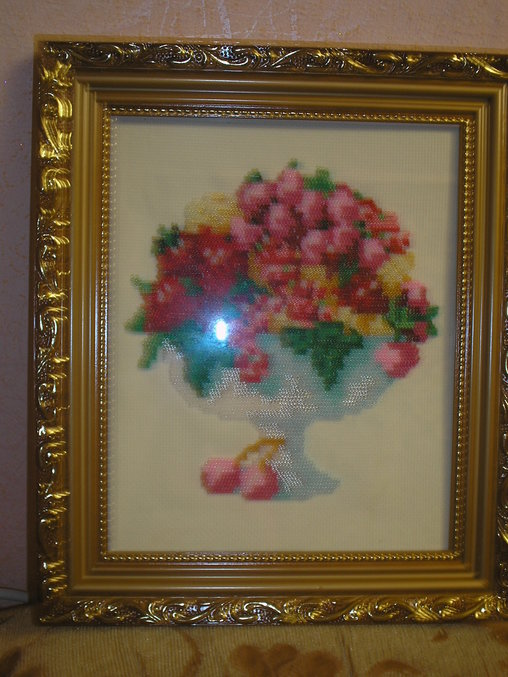 Спасибо за комментарий. В след. раз попробую по-другому сфоткать. А эта картина ушла к заказчику, он остался доволен результатом. Бисерные работы вообще, труднее фотографировать, т.к. не только стекло дает отсвечивание, но и бисер. В деле работы бисером смотрятся, конечно, лучше, чем на фото.