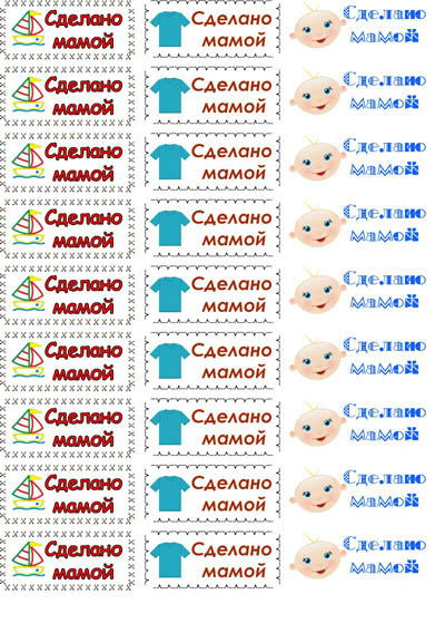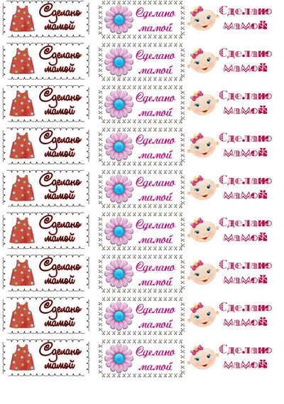 Этикетки сделаны аналогично промышленным – не линяют, не сдираются, их можно стирать и гладить. Рисунки очень четкие и яркие! На ткань переводится только краска, поэтому нет некрасивой подложки, бросающейся в глаза.