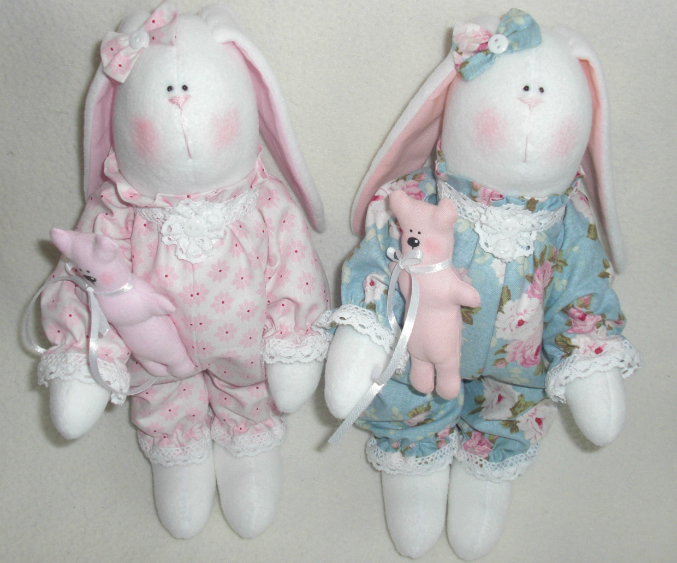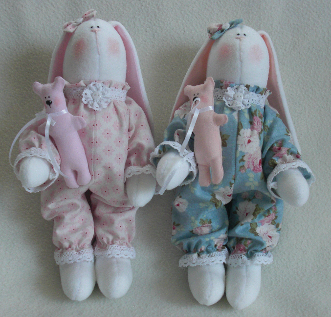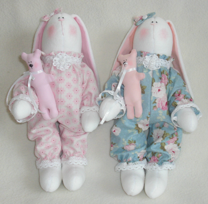 Представляю вашему вниманию очаровательных заек в милых пижамках! Эти малышки сшиты на заказ для двух маленьких сестричек, надеюсь, они подарят им радость и хорошее настроение!))