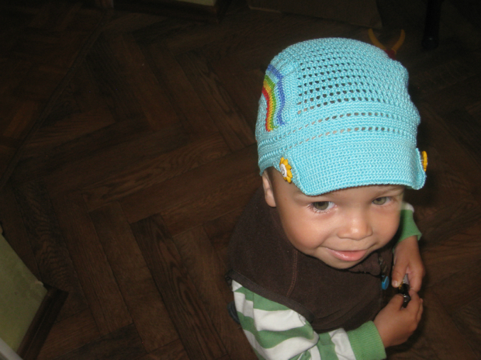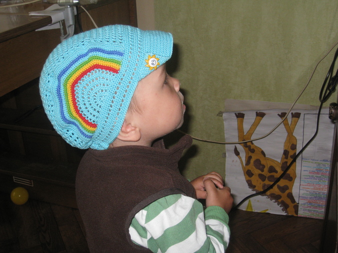 Недавно связалась кепочка по мотивам Марины Трикоз "Двойная радуга" http://www.babyblog.ru/community/post/rukodelie/1894923 , но оказалась великовата, немного доработала ее и представляю на владельце.