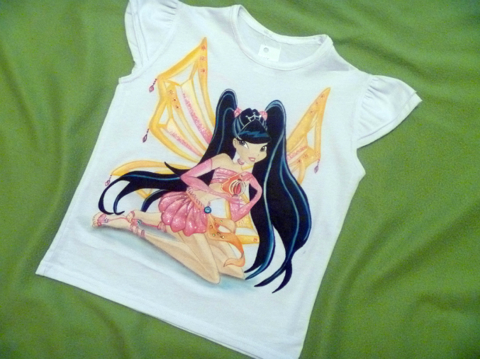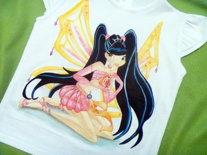 Роспись по ткани, батикЯркая и переливающаяся. Добавила немного стразков на части одежды-выглядят как драгоценные камушки))