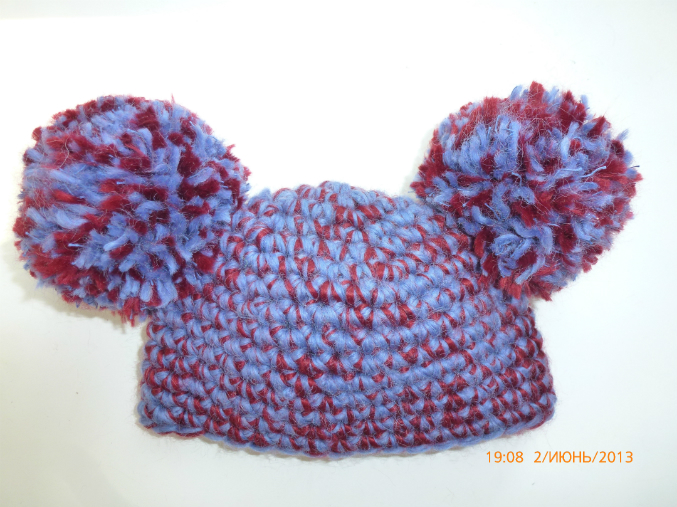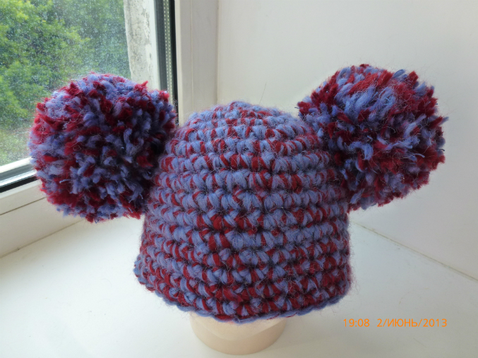 название пряжи не знаю, собрала то, что дома нашла, вязала крючком номер9.