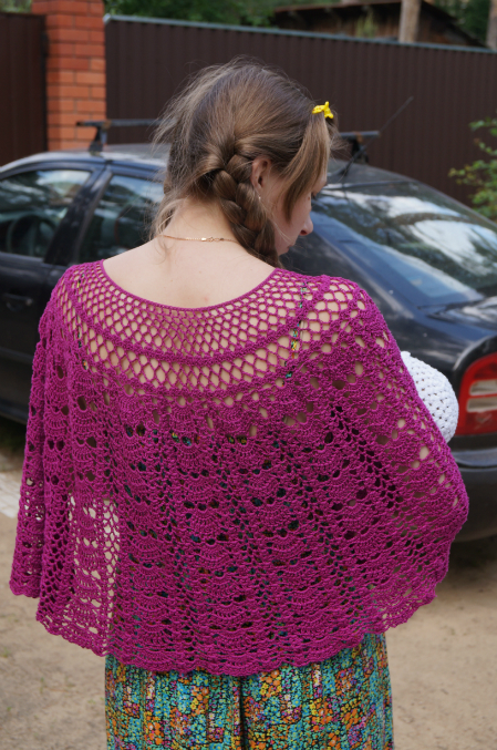 мой размер!!!Схема такой накидки ест а вот с петлями у меня расчёт туговат....Начала 1 пелерину и петлей набирала с запасом а вышло что мало..Теперь лежит недовяз..