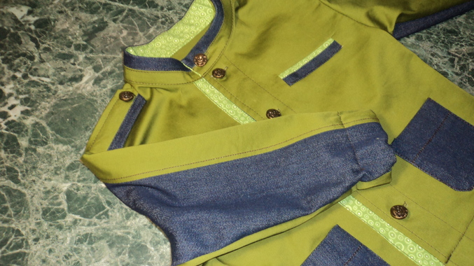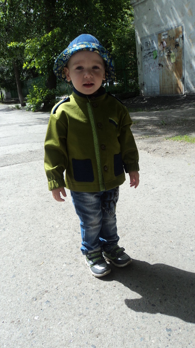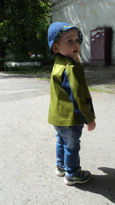 Шитье одежды, выкройки, ремонт одежды, шторы, швейные машины (уже приобретенные)Сшила пиджачок Семену. Ткань тонкая джинса, светло зеленая это американский хлопок. Выкройку строила сама. Ну как то так скомбинировала.