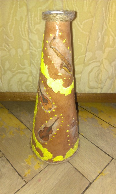 И вазочка икеевская. Долго придумывала как ее оформить, начала - не понравилось, стала делать по-другому и так все время. Получилось, что получилось, такая вот солнечная музыка)))