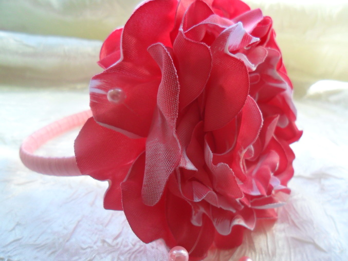Описание: ободок для волос с цветком , лепестки , которого вырезаны, обработаны и окрашены вручную.