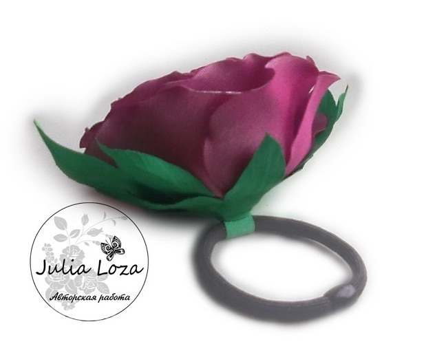 Описание: Роза-резинка ручной работы из атласа, 11 см, прекрастно дополнит летний наряд, обычный хвост станет нарядной прической))))