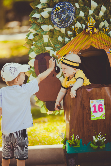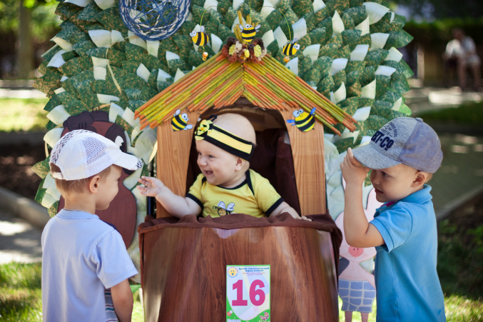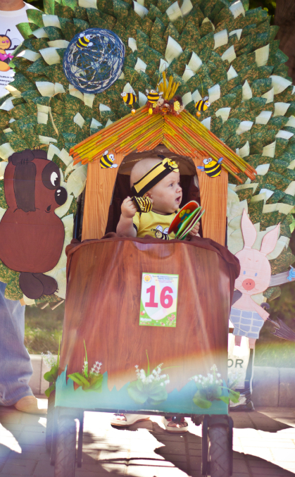 Вот с таким творением мы пришли на Севастопольский парад колясок - 2013. Наш образ - "Винну-Пух и жужжащее дерево". Поля с мамой и папой были "неправильными" пчелами)))