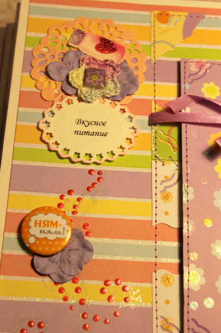 Яркий альбомчик - это точно. У меня еще один набор яркой, сочной бумаги остался, жду желающих на неё. А то, все альбомы в нежных и пастельных тонах.
