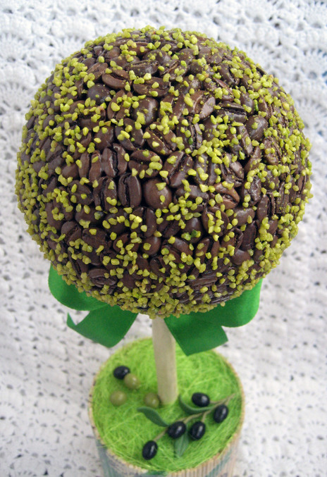 Высота дерева 37см, горшок ручной работы декорирован в технике декупаж.
