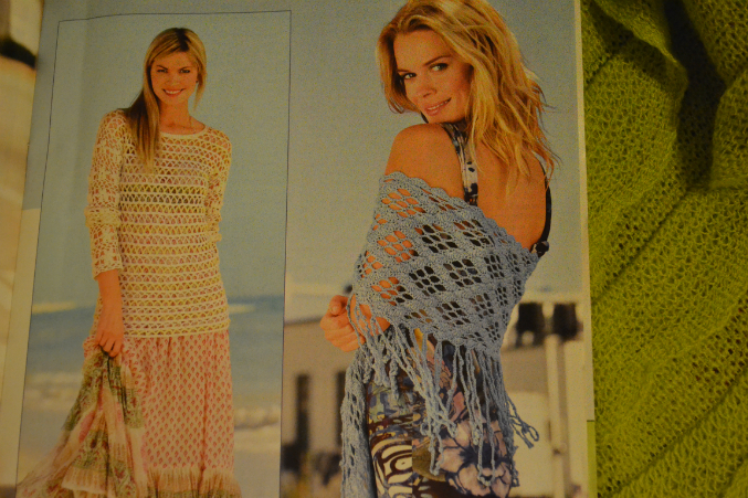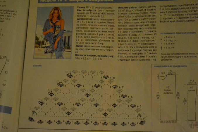 Вот смотрите , я связала шарф...вот по картинке он вроде как прямоугольный как шарф , а не как косынка...я связала по схеме, получился треугольник , а на картинке вроде как шарфом.