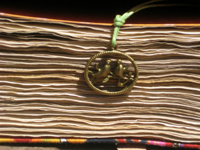 Для Закладки использовала бронзовую подвесочку в виде птичек на качельке Сплетен копским переплетом, Укреплен капталом,