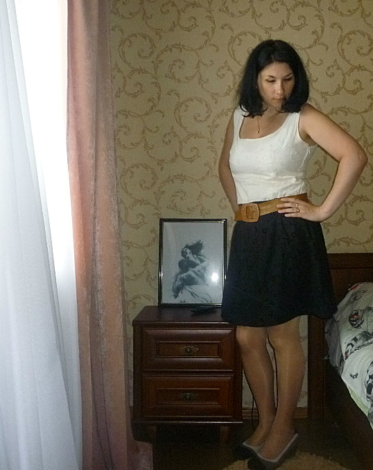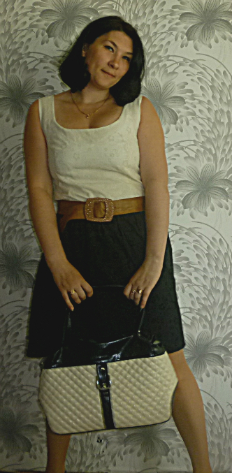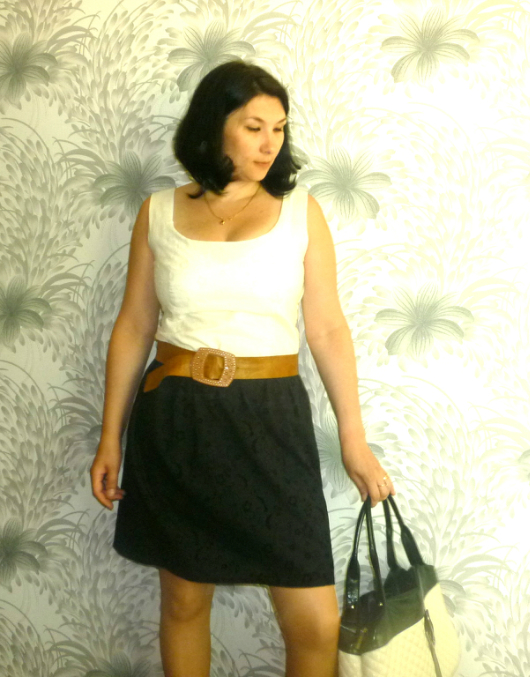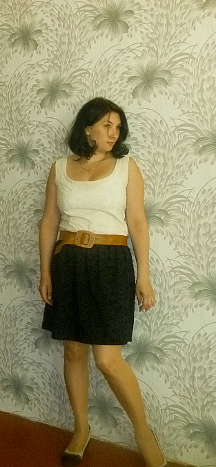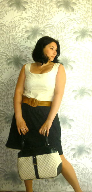 Шитье одежды, выкройки, ремонт одежды, шторы, швейные машины (уже приобретенные)Было у меня два отреза ткани белой 70см и чёрной 50см , решила сшить платье- пробник ,чтоб идеально подобрать свой размер( т.к раньше 44р брала -всё ушивала) попробовала 42р(грудь объём 96см) а низ вообще 38 р.Ткань варен.хлопок с жаккард.рисунком , но на фото не очень видно.Лиф полностью двойной,талия отрезная, шила по бурде.