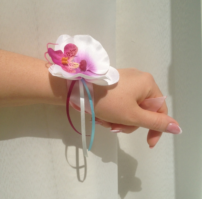 Сначала хотела сделать из живых цветов, но потом решила, что украшу только настоящей гипсофилой, которую можно убрать ,а красивый браслетик останется)