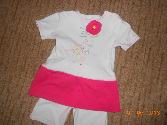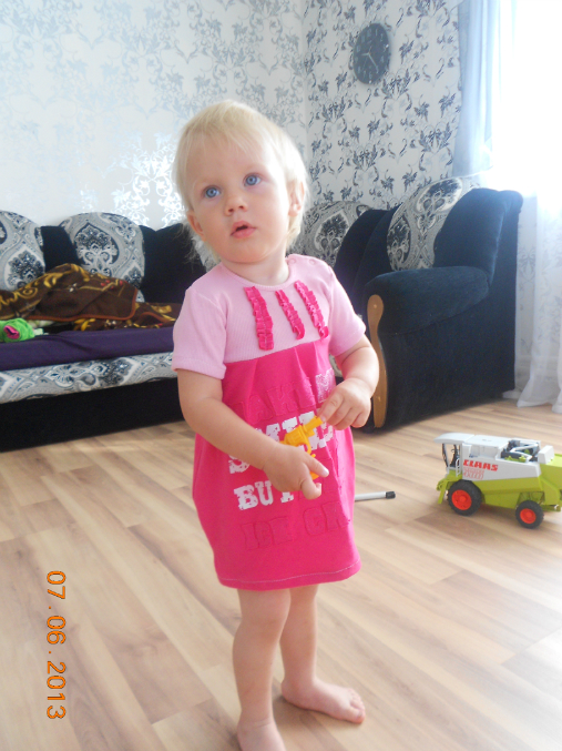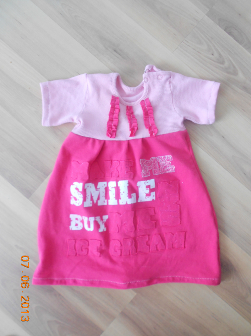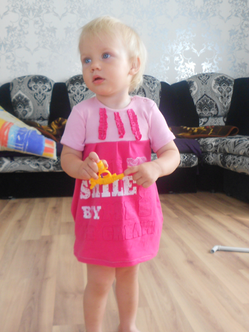 вот такое платьице, низ от моей футболки, на груди пришлось сделать такие полосочки, т.к. была небольшая дырочка)) и укоротила рукав, т.к. они были длинные и узкие доче..