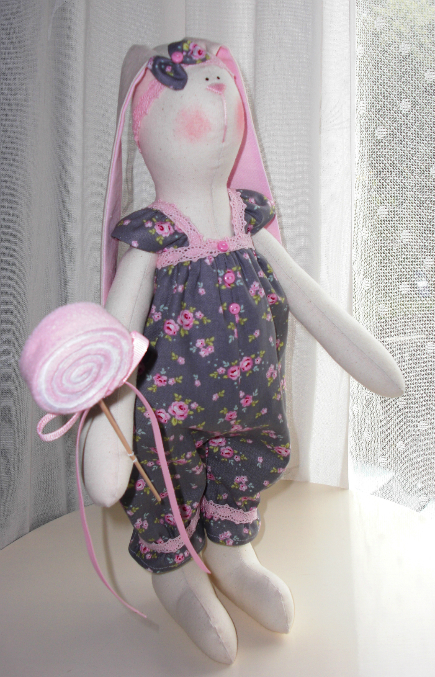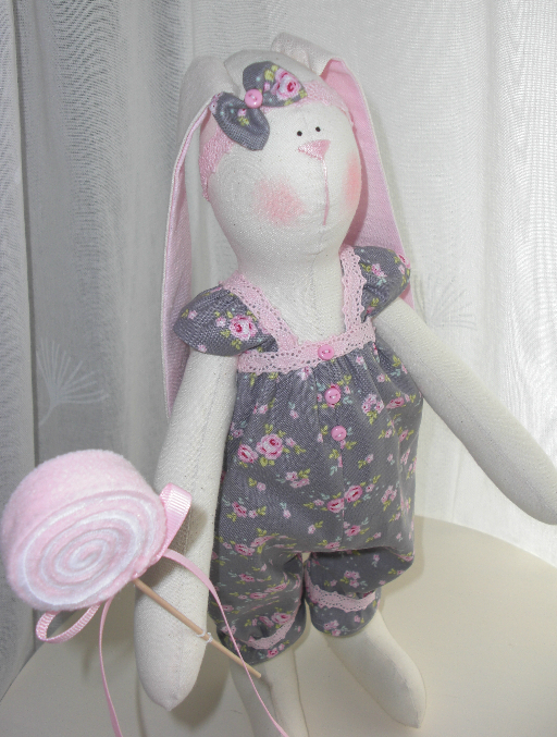 Представляю вашему вниманию милую зайку в летнем комбинезончике с вкусной карамелькой! Она получилась такая сладка, поэтому и назвала ее Candy (карамелька - в пер. с англ.)