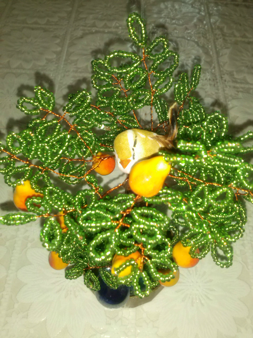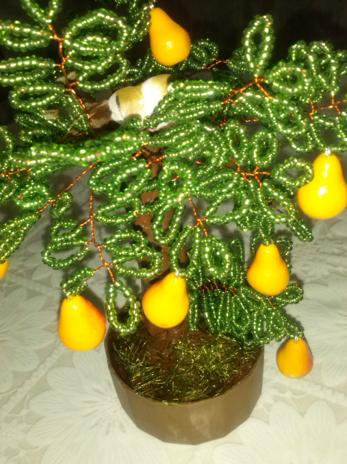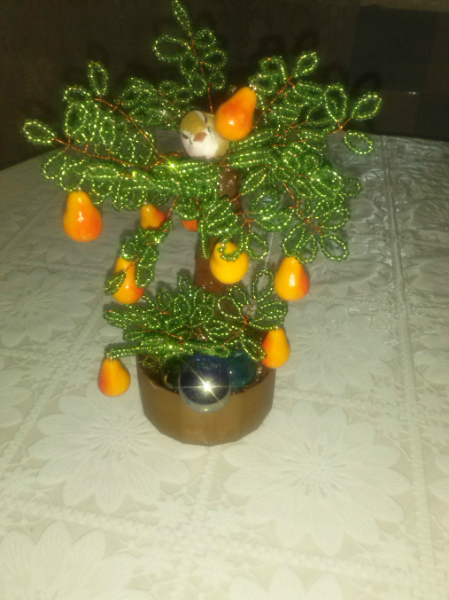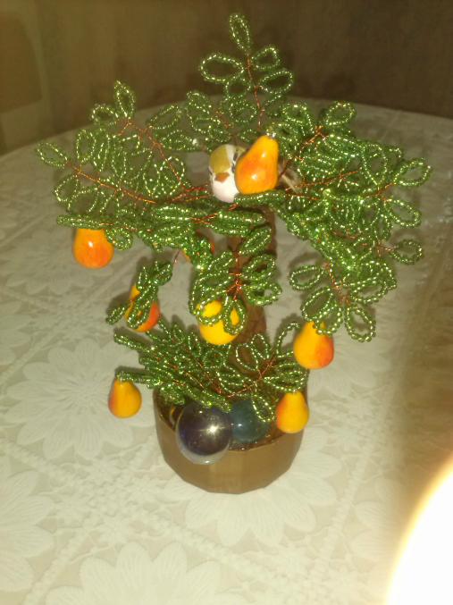 Бисер. Бисероплетение. Украшения из бисера.Насмотрелась я у Мариночки ее мини деревца и решила тоже небольшое сделать))))))Вот такое грушевое дерево вышло за один день с перерывами))))))