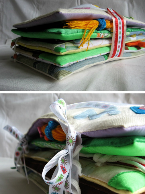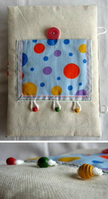 10 страничка (обложка). Карман из гипноткани в горошек : ), внизу пришиту бусинки - дергать-перебирать-считать.