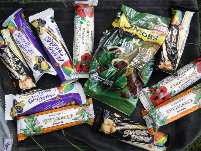дальше радсть для нашего папы))))любителя кофе и сладенького)очень уж он обрадовался,что и на еего улице перевернулся грузовик с пряниками))))
