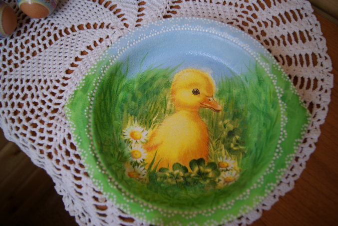 а это декупаж на металлической тарелке, старой и страшной)))))