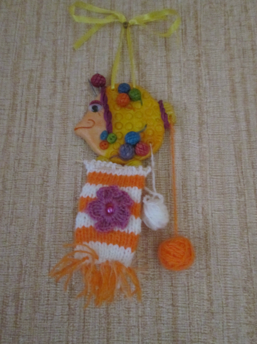 Рыба рукодельница будет висеть в коридоре, она уже на своем месте, просто очаровательная, как раз вяжет как и я)))