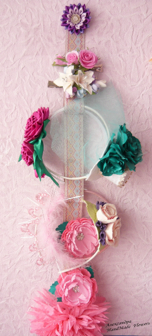 Просто превосходные работы!!!!!!!!!! А вот на втором фото справа розочки на заколке из ткани или....?