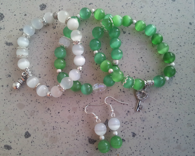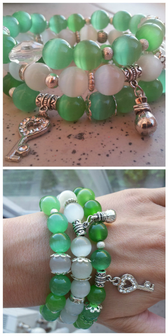 Бижутерия для слингомам. Слингобусы. Грызунки.Новый комплект браслетов на заказ. Зелененький с белым.