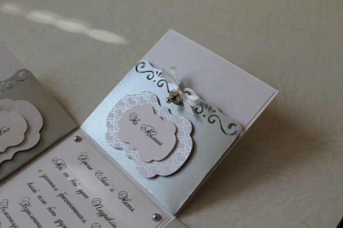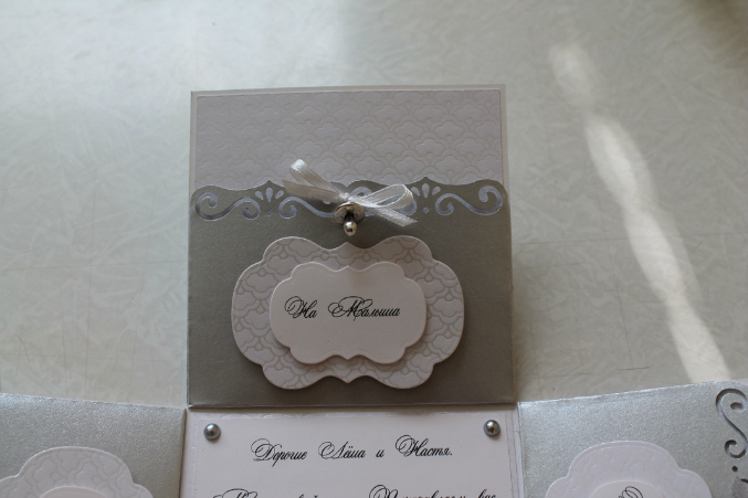 Смотрю на крышечке какие-то прикольные завиточки, думаю, вроде не было у тебя такого ножа, надо спросить, и только когда до конца досмотрела догадалась откуда они)) Мне нравится, лаконично и в то же время торжественно и сразу видно, что на свадьбу))