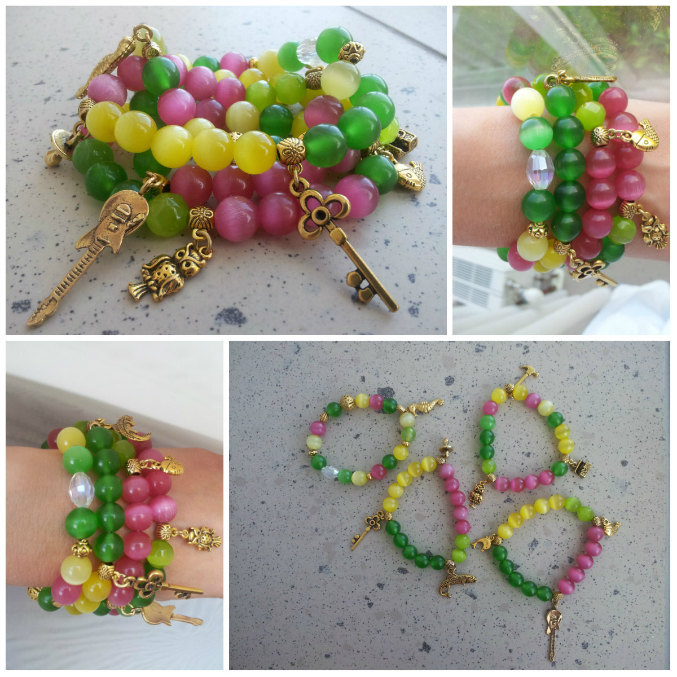 Бижутерия для слингомам. Слингобусы. Грызунки.Яркий летний комплект из 4-х браслетов на заказ