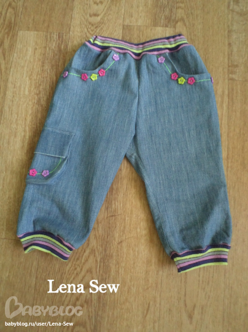 Ещё бриджики с резинкой и манжетами из кашкорсе. Из маминых джинс)
