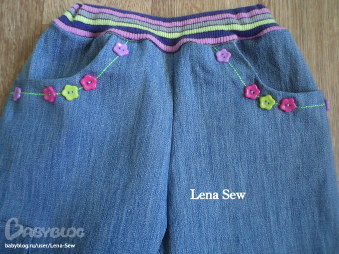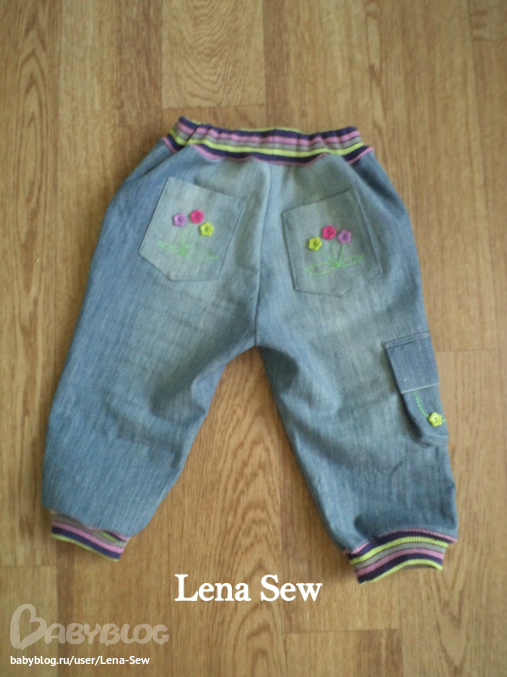 это из папиных джинс дочке джинсы перешила. Выкройка Оттобре 2012-01 модель18. Вообще то модель для джинсы-стрейч), но дочка у меня спичка, поэтому ей в пору.