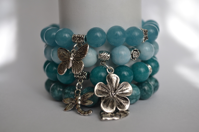 коралл, тонированный матовый агат, тонированный кварц и варисцит