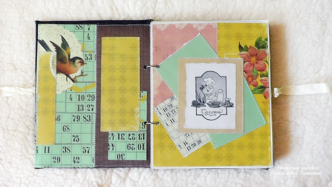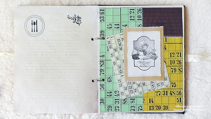 СкрапбукингРешила я порадовать свою мамулечку и сотворила для нее кулинарную книжечку, моя мамуля любит искать новые рецепты в интернете, а самые "вкусные" она записывает, поэтому, думаю, мой подарок будет как нельзя кстати. Книга на кольцах, формата чуть больше чем А5, в ней 60 тонированных кофеных листочков (хотела сделать больше, но диаметр колец был маленький, а других под рукой нет....) Много разделов делать не стала : "Салаты", "Супы", "Вторые блюда" и "Блюда из теста". Книжка получилась, на мой взгляд, теплая, уютная и домашняя....