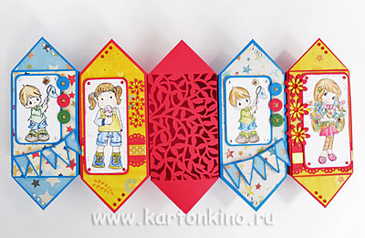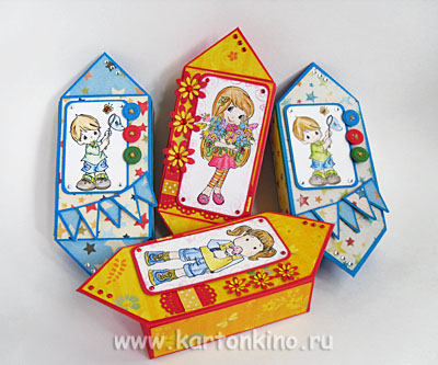 Хочу поделиться с вами очередной идеей детской подарочной упаковки на базе новой версии коробочки-конфетки в стиле ”Красной шапочки” или “Гулливера”.